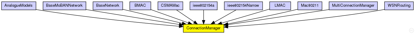 The central module that coordinates the connections between all nodes, and handles dynamic gate creation. ConnectionManager therefore periodically communicates with the mobility module and ChannelAccess.