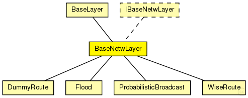 // Base module for every network layer module simple BaseNetwLayer extends BaseLayer like IBaseNetwLayer { parameters: @class(BaseNetwLayer); bool coreDebug; // debug switch for core framework bool stats; // stats switch double headerLength @unit(bit); // length of the network packet header (in bits) }