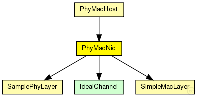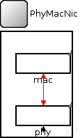module PhyMacNic { parameters: string connectionManagerName; //name of the ConnectionManager module @display("bgb=101,150,white,,;bgp=10,10"); gates: input radioIn; // radioIn gate for sendDirect submodules: phy: SamplePhyLayer { parameters: @display("p=60,120;b=80,30,rect,white,,"); } mac: SimpleMacLayer { parameters: @display("p=60,45;b=80,30,rect,white,,"); } connections: phy.upperGateOut --> { @display("ls=black;m=m,25,50,25,0"); } --> mac.lowerGateIn; phy.upperGateIn <-- { @display("ls=black;m=m,15,50,15,0"); } <-- mac.lowerGateOut; phy.upperControlOut --> { @display("ls=red;m=m,75,50,75,0"); } --> mac.lowerControlIn; phy.upperControlIn <-- { @display("ls=red;m=m,85,0,85,0"); } <-- mac.lowerControlOut; radioIn --> phy.radioIn; }