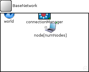 // //This example shows the basic structure of an network using MiXiM. // //The network consists of three hosts which use the CSMAMacLayer as MAC layer, //"SimplePathlossModel" as only AnalogueModel and a SNRThresholdDecider as Decider. // //The used Network- and Application layer can be defined in the omnetpp.ini. As default //the BaseNetwLayer and BurstApplLayer are used. // //You can use this network as an template for you own simulation. // network BaseNetwork { parameters: double playgroundSizeX @unit(m); // x size of the area the nodes are in (in meters) double playgroundSizeY @unit(m); // y size of the area the nodes are in (in meters) double playgroundSizeZ @unit(m); // z size of the area the nodes are in (in meters) double numNodes; // total number of hosts in the network @display("bgb=$playgroundSizeX,$playgroundSizeY,white;bgp=0,0"); submodules: connectionManager: ConnectionManager { parameters: @display("p=150,0;b=42,42,rect,green,,;i=abstract/multicast"); } world: BaseWorldUtility { parameters: playgroundSizeX = playgroundSizeX; playgroundSizeY = playgroundSizeY; playgroundSizeZ = playgroundSizeZ; @display("p=30,0;i=misc/globe"); } node[numNodes]: BaseNode { parameters: @display("p=170,50;i=device/wifilaptop"); } connections allowunconnected: }