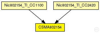 This NIC implements a TI CC1100 network interface card using the CSMA protocol as specified in IEEE 802.15.4-2006. |